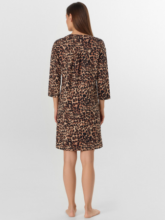 Домашняя туника для сна и отдыха. В составе полотна – только натуральный хлопок. Длина туники до колена, силуэт прямой, на груди – вырез и застежка на пуговицы. Отличная модель!