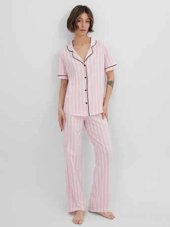Комплект отлично подойдет для спокойного сна, утреннего кофе или неспешных домашних дел. Классическая полоска и нейтральная цветовая гамма делают его универсальным и практичным выбором для повседневной носки.