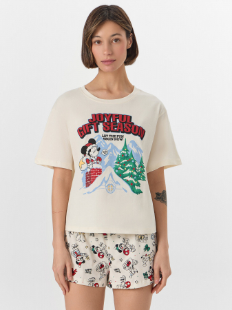 Женская пижама, состоящая из футболки и шорт, выполнена из натурального хлопка — дышащего, мягкого и приятного к телу материала, идеально подходящего для комфортного сна и отдыха. Натуральная ткань обеспечивает хорошую воздухопроницаемость и не вызывает раздражения, что особенно важно для чувствительной кожи. Футболка свободного силуэта с круглой горловиной и слегка спущенной линией плеча создает расслабленный и уютный образ. Свободные рукава не ограничивают движения, а аккуратная обработка низа рукавов и самого изделия швом вподгибку подчеркивает качество пошива и делает модель визуально завершенной. Шорты короткие, свободного кроя, с эластичным поясом, который обеспечивает комфортную посадку без давления. Низ шорт также обработан швом вподгибку, что придает изделию аккуратный вид. Пижама идеально подойдет для домашнего отдыха, сна или уютных вечеров, сочетая в себе легкость, комфорт и лаконичный стиль.