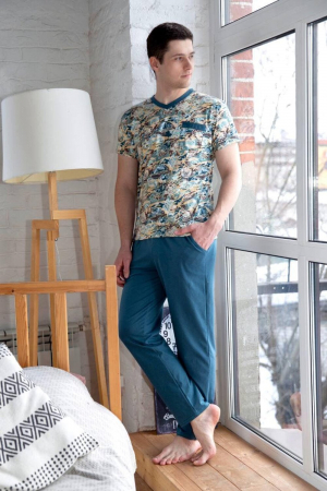Отличный мужской костюм для дома и отдыха. Состоит из однотонных брюк и футболки . Незаменимая вещь в мужском гардеробе.