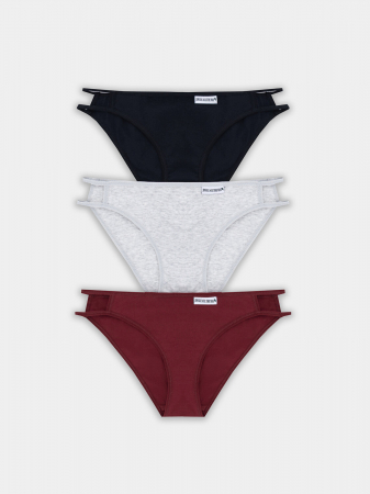 Набор из трех женских слипов с новогодним принтом создан для тех, кто ценит ежедневный комфорт и праздничное настроение. Каждая модель со средней посадкой обеспечивает удобную поддержку и идеальную посадку, которая сохраняется в течение всего дня. Протяжки по боковым швам аккуратно подчеркивают силуэт.