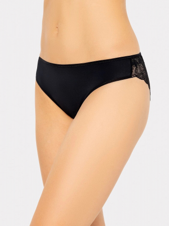 Комфортные слип-бикини из невесомой микрофибры и ажурного эластичного кружева на задней детали. Посадка по талии слегка занижена. На верхнем срезе и по ножкам – эластичная тесьма. Стильные трусики!