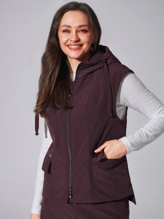 Стильный утепленный жилет с капюшоном немного приталенного силуэта от российского производителя D’imma Fashion Studio. Центральная застежка на молнию с ветрозащитным клапаном внутри. Ткань с водоотталкивающей пропиткой, которая очень поможет в дождливую и ветренную погоду. Благодаря новейшему утеплителю ТермМакс жилет будет очень теплым и легким. Несмотря на кажущуюся легкость гарантирует превосходные теплозащитные свойства. Утеплитель износоустойчив, отлично сохраняет форму и упругость после стирок. Достаточно бережной стирки при температуре не более 30 градусов. Это идеальный выбор для тех, кто хочет выглядеть стильно и чувствовать себя комфортно в любой ситуации. Капюшон с функциональной кулиской , позволяющий регулировать объем, не отстегивается. На полочке два прорезных кармана с клапаном. Спинка немного длиннее, дополнена боковыми разрезами. Подкладочная ткань прекрасно пропускает воздух и воду. Мы используем только лучшие материалы и тщательно следим за каждым этапом производства. Все наши модели проходят тщательный контроль качества, чтобы удовлетворить самым высоким стандартам. Безрукавка женская утепленная - абсолютно базовый элемент гардероба, сочетающийся почти с каждой вещью.