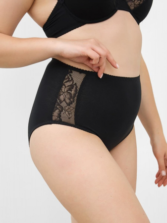 Очаровательные трусики-макси из нежного хлопкового полотна в базовой расцветке. Высокая посадка по талии, широкие боковые части и полностью закрытые ягодицы – залог комфортной посадки на фигуре. Полупрозрачные кружевные вставки по бокам добавляют этим макси игривости. Модель отлично подойдет дамам с пышными формами!