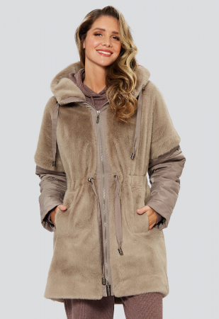 Шикарное, невероятно женственное, нарядное демисезонное пальто комфортной длины в Casual-стиле от российского производителя D’imma Fashion Studio прямого силуэта с утеплителем нового поколения ТерМакс - необходимая часть гардероба, позволяющая подчеркнуть стиль, имидж и даже настроение женщины. Благодаря особой обработке каландером, утеплитель тонкий и лёгкий, сильнее сохраняет тепло, поэтому пальто теплое и очень легкое. Модель свободного кроя с цельнокроеным комбинированным рукавом и несъемным капюшоном из супермодного Эко меха " под норку", Рукава выполнены из стеганной ткани. Их можно подвернуть, сделать короче и оформить манжет. За дополнительную защиту от непогоды отвечает воротник-стойка, переходящий в несъемный капюшон со шнурком, регулирующим объем капюшона. Модель с застежкой на декоративную, но в то же время функциональную двухзамковую реверсную молнию и поясом-кулиской, формирующим приталенный силуэт. Пальто с просторными карманами с листочками, застегивающимися на кнопки, которые завершают зимнюю симфонию модели. Есть большие размеры. Прямой силуэт и ничего лишнего, что может помешать Вам любоваться окружающим миром по дороге на работу, на прогулке в парке или по городу. Не взирая на причуды природы, в такой модели Вы будете выглядеть женственно и неповторимо. Можно дополнять яркими аксессуарами и менять образ под настроение. Разнообразные версии – ключ к созданию линейки модных, индивидуальных луков.