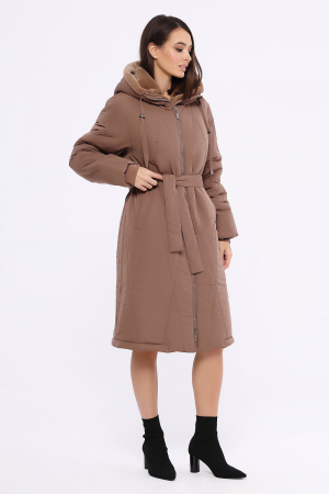 Лаконичное, стеганое пальто прямого силуэта из полуматовой ткани с водоотталкивающей пропиткой и утеплителем ТермМакс. Декоративная стежка ромбами подчеркивает модный силуэт.За дополнительную защиту от непогоды отвечает капюшон с цельноекроенной стойкой, который можно красиво разложить по типу воротника-апаш. Капюшон внутри полностью отделан супермодным Эко мехом "Кролик Рекс", что свидетельствует о высоком уровне дизайна и проработки изделия. Модель с застежкой на молнию, рукавом с трикотажной манжетой, помогающей регулировать длину рукава. Карманы на молнии с листочкой. Ширина пальто по низу регулируется кулиской. Пояс в комплекте.