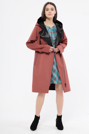 Комфортный плащ средней длины с капюшоном, российского производства, бренда D'imma . Центральная ассиметричная застежка на молнию.Ткань верха с водоотталкивающей пропиткой, контрастная подкладка. Капюшон не отстегивается . Длина рукавов регулируется патами и отворотом. Пояс в комплекте. В наличии широкий размерный ряд, большие размеры.