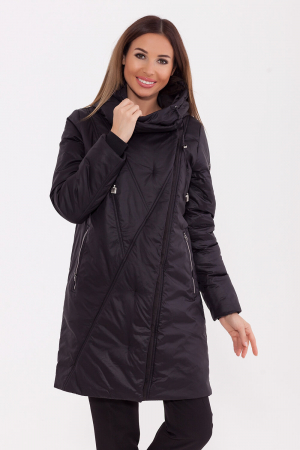 Стильное зимнее пальто средней длины. Застежка со скрытой молнией и потайными кнопками, карманы на молнии. Капюшон затягивается на кулиску.