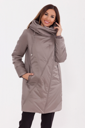 Стильное зимнее пальто средней длины. Застежка со скрытой молнией и потайными кнопками, карманы на молнии. Капюшон затягивается на кулиску.