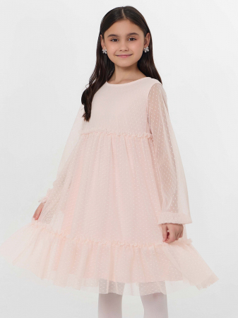 Нарядное платье для девочки из нежной сеточки – идеальный выбор для праздничных мероприятий, утренников и других торжественных случаев. Круглый вырез горловины и длинные рукава придают модели элегантность и утонченность. На спинке находится застежка-пуговица, что добавляет изысканный акцент. Подкладка платья выполнена из нежной хлопковой кулирки, которая обеспечивает комфорт и мягкость на протяжении всего дня. Кулирка – это материал, который дышит, позволяет коже ощущать приятную прохладу и предотвращает раздражение, что особенно важно для детской кожи. Это платье не только красиво, но и функционально, оно подарит вашей малышке ощущение праздника и комфорта. Рекомендуем для создания волшебного и нарядного образа!