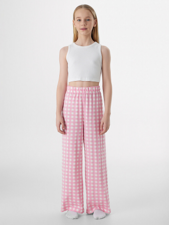 Брюки домашние слегка расширены к низу. Пояс цельнокроеный с эластичной тесьмой внутри (Rv40), ширина 40 мм.