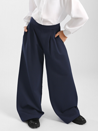 Утеплённые брюки палаццо с карманами. Пояс на широкой, эластичной резинке без пуговиц и молнии. Утеплитель - флис мягкий, лёгкий материал, идеально согревающий в холодное время года.