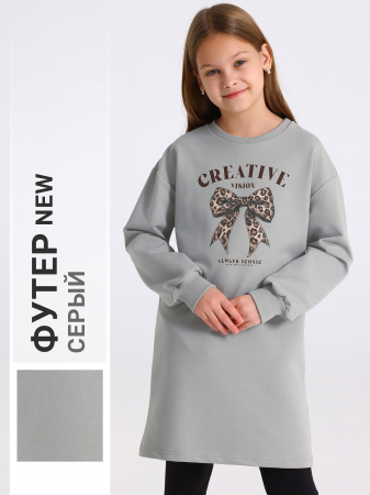Платье для девочки из футера - тонкого хлопкового полотна с содержанием полиэстера. Изделие свободного силуэта, со спущенными плечами и длинными рукавами. Полочка украшена печатью. Уход: только машинная стирка (руками не стирать!) при температуре 40 градусов, без предварительного замачивания. Изделия с печатью и декором перед стиркой необходимо вывернуть на изнаночную сторону.