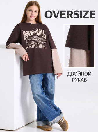 Лонгслив для девочки выполнен из кулира - лёгкого хлопкового полотна. Изделие свободного силуэта, со спущенными плечами и двойными рукавами, Полочка украшена печатью. Уход: только машинная стирка (руками не стирать!) при температуре 40 градусов, без предварительного замачивания. Изделия с печатью перед стиркой необходимо вывернуть на изнаночную сторону.