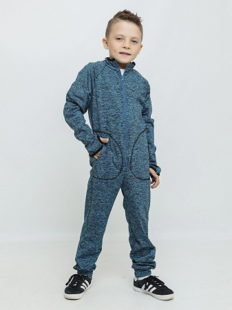 Флисовый комбинезон голубого цвета на трикотажной основе детский Рэми. Неутепленная модель на молнии, с высоким воротником из плотного трикотажного хлопкового материала. Универсальный комбинезон для мальчика и для девочки можно носить в любое время года, как в качестве самостоятельного предмета одежды, так и в качестве поддевы.