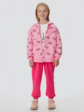 Комплект для девочек состоит из футболки, жакета и брюк.
