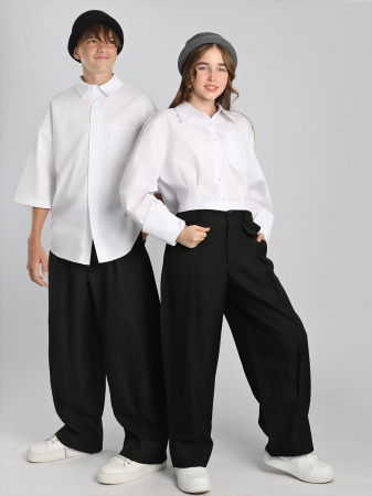 Брюки подростковые Соль&Перец в классическом стиле, с карманами, с высокой посадкой. Брюки выполнены из качественной костюмной ткани габардин, которая отлично держит форму и устойчива к сминанию. Модель оснащена удобным широким поясом со шлёвками, который обеспечивает комфортную посадку по фигуре.