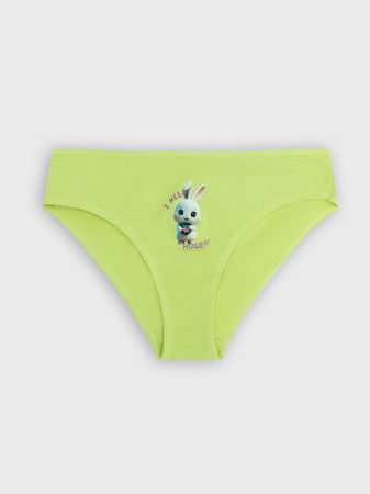 Трусы для девочек. Ластовица из трикотажного кулирного полотна. Задняя деталь цельнокроенная. Верхний и нижние срезы трусов окантованы лаваблем.