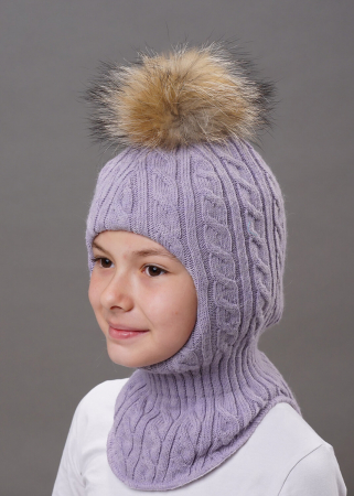 Шапка-шлем со съемным помпоном из натурального меха на кнопке, выполнена фактурным переплетением "косы" из итальянской пряжи с содержанием шерсти альпаки, в области шеи - ластичная ножка для более плотного прилегания. Модель на синтепоне с хлопковым подкладом.