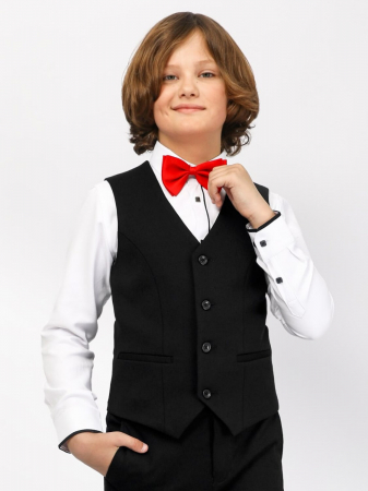 Классический, однобортный жилет для мальчика Соль&Перец. Жилет с подкладом, выполнен из износостойкой трикотажной ткани которая долго сохраняет форму и привлекательный внешний вид. Подойдёт для посещения школы, официального или праздничного мероприятия.
