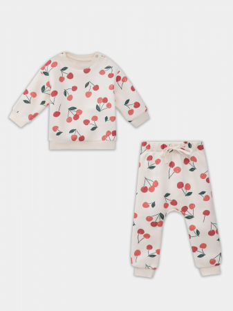 Комплект десткий состоит из кофточки и ползунков и прошит в футере 3-х нитка с начесом. Кофточка свободного силуэта. Спинка и перед цельнокроенные. Рукава втачные, длинные, одношовные. Горловина круглая, окантована бейкой из трикотажной рибаны 2*2 R-6, R22-062.01.360, 96% хлопок;4% эластан, 230 гр, 165 см. На левом плече застежка книппер 9 мм - 2 шт. По низу изделия притачные манжеты из трикотажной рибаны 2*2,R-6,R22-062.01.360, 96% хлопок; 4% эластан, 360 гр/м?, 135 см. Ползунки детские с ластовицей и открытыми ножками. Пояс цельнокроенный, с эл. тесьмой внутри (внутрення резина 40RV), ширина 40 мм. В пояс вставлена ХБ тесьма, ширина 10 мм. По низу изделия притачные манжеты из трикотажной рибаны 2*2 R-6, R22-062.01.360, 96% хлопок; 4% эластан, 360 гр/м?, 135см.