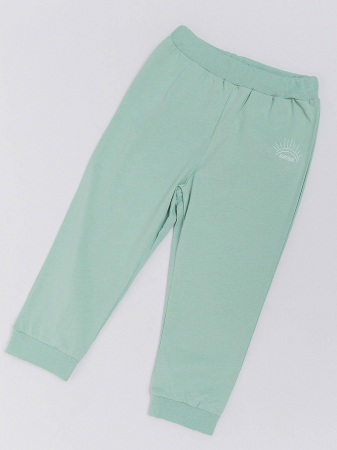 Брюки для девочки трикотажные из супрема пенье. Детские брюки изготовлены из натурального хлопка высокого качества, выдержат неоднократные стирки и подойдут для повседневной носки. Мягкая резинка не давит на животик малыша, а однотонная мятная расцветка подойдет к любой одежде.