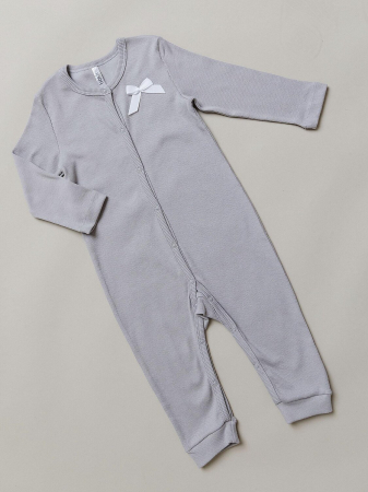 Комбинезон для девочки с длинными рукавами в расцветке какао. Удобный комбинезон на кнопках с открытыми ножками в однотонной расцветке с бантиком. Хлопковый комбинезон из новой коллекции для самых маленьких выполнен из мягкого полотна кашкорсе.