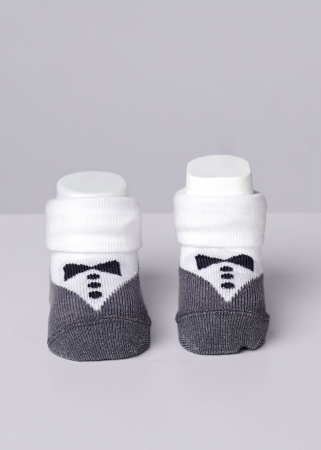 носки ясельные со стильным рисунком- "джентельмен" имитирующий фрак и бабочку