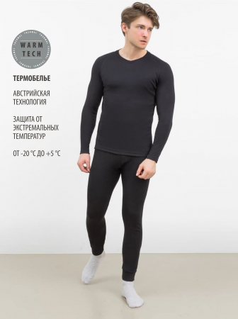 Комфортабельная мужская фуфайка из термо-материала с V-образным вырезом горловины и длинным рукавом. Незаменимая деталь гардероба для холодного времени года. "Умный" материал фактуры "термо" удерживает тепло и в то же время отводит избыточную влагу. Изделия из такой ткани могут использоваться ежедневно, для занятий спортом, охотой, рыбалкой и активного отдыха. Особый способ вязания полотна, предуcматривающий воздушные ячейки, соединяющие основу полотна с верхним слоем, придаёт изделиям особые гигиенические и термические свойства. Австрийская технология производства ткани позволяет выдерживать экстремальные температуры до -20 градусов Цельсия. Не мёрзните, не болейте и чувствуйте себя комфортно!