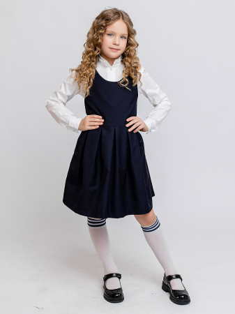 Сарафан для школы с боковыми карманами в швах и складками на талии. Школьный сарафан для девочек выполнен из плотной и прочной костюмной ткани черного цвета с добавлением вискозы.