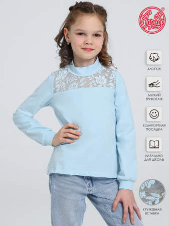 Водолазка для девочки выполнена из кулира - легкого хлопкового полотна с лайкрой. Изделие с длинными рукавами на манжетах, украшено кокеткой из тонкого ажурного полотна. Незаменимый предмет гардероба для юных школьниц! Уход: только машинная стирка (руками не стирать!) при температуре 40 градусов, без предварительного замачивания.
