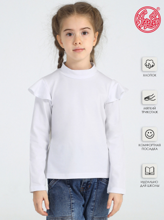 Водолазка для девочки выполнена из кулира - легкого хлопкового полотна с лайкрой. Изделие с длинными рукавами украшенными оборкой и воротником-стоечкой. Незаменимый предмет гардероба для юных школьниц! Уход: только машинная стирка (руками не стирать!) при температуре 40 градусов, без предварительного замачивания.