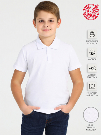 Футболка-поло для мальчика выполнена из хлопкового полотна. Изделие с короткими рукавами, с застежкой на кнопочки. Отличный вариант для школы! Уход: только машинная стирка (руками не стирать!) при температуре 40 градусов, без предварительного замачивания.