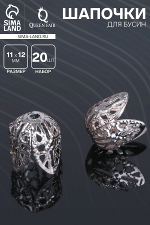 Шапочки для бусин (набор 20 шт.), СМ-051, 11×12 мм, цвет серебро (арт. 1514825)