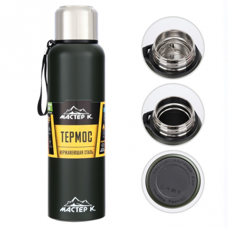 Термос, 1.5 л, Путешествие "Мастер К.", с кружкой, сохраняет тепло 24 ч, с ситом (арт. 10136884)