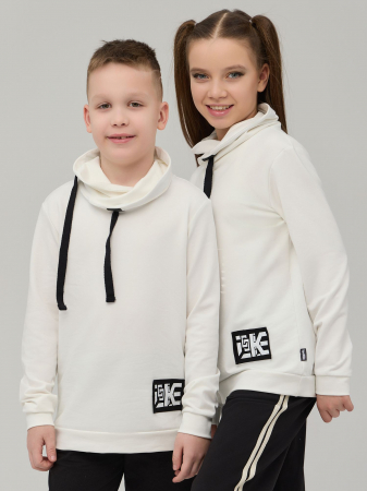 Толстовка из футера молочного цвета . Ассиметричный воротник со шнуром. Изделие выполнено из трикотажа премиального качества - ПЕНЬЕ, с содержанием хлопка более 92%
