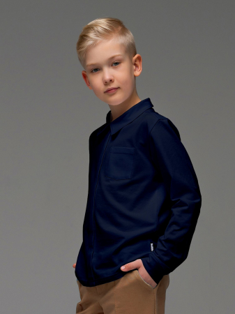 Толстовка а-ля "рубашка" из кулирки темно-синего цвета , с центральной планкой, нагрудным карманом и отложным воротником. Изделие выполнено из трикотажа премиального качества - ПЕНЬЕ, с содержанием хлопка более 95%
