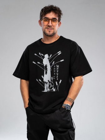 Футболка мужская из футера черного цвета свободного силуэта с короткими рукавами,круглая горловина обработана рибаной. Изделие выполнено из трикотажа премиального качества - ПЕНЬЕ, с содержанием хлопка более 92%