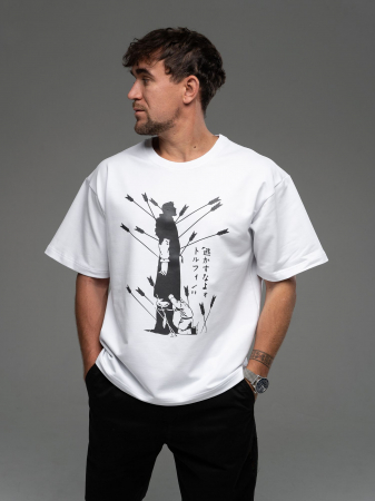 Футболка мужская из футера белого цвета свободного силуэта с короткими рукавами,круглая горловина обработана рибаной. Изделие выполнено из трикотажа премиального качества - ПЕНЬЕ, с содержанием хлопка более 92%