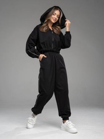 Толстовка на молнии из футера черного цвета , с капюшоном. По низу изделия и рукавов-резинка. Изделие выполнено из трикотажа премиального качества - ПЕНЬЕ, с содержанием хлопка более 92%