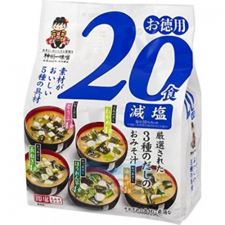 Традиционный японский мисо-суп с пониженным содержанием соли со вкусом вакаме, тофу и инари