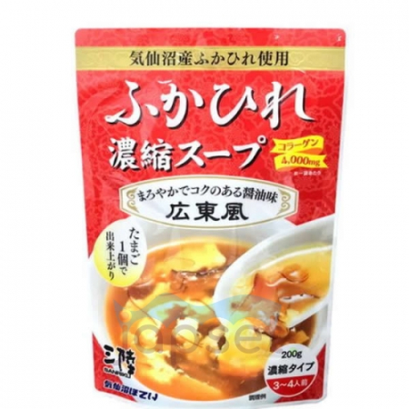 Суп из акульих плавников приготовлен по традиционному рецепту провинции Гуандун. Этот суп - редкая находка для рынка нашей страны, потому что акульи плавники невозможно производить и консервировать в России. У японцев же наоборот для этого есть и нужные ингредиенты и технологии.