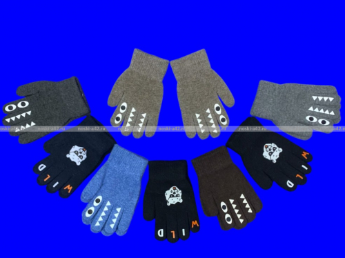 Перчатки детские, подростковые с начесом с прикольным принтом оптом.
