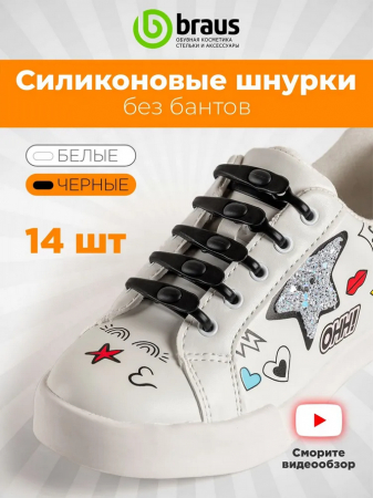 Шнурки BRAUS СИЛИКОНОВЫЕ (14 штук в упаковке) не нужно подвергать стирке, зашнуровывать. Силикон способен к растяжению. Благодаря силикону, шнурки растягиваются и не оказывают давления на стопу в процессе носки. Устойчивы к выгоранию, вытягиванию и изменению цвета.