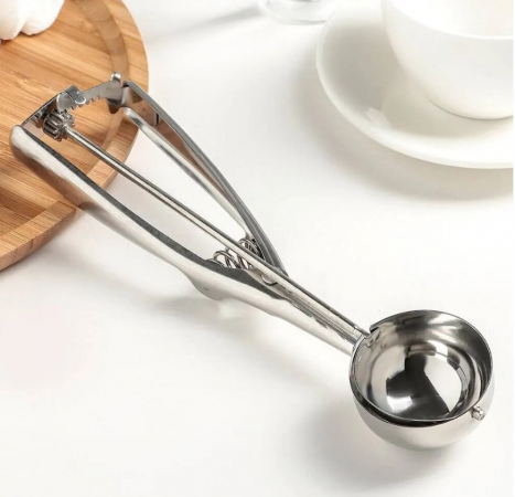 Мороженое обладает особой магией. Мы готовы лакомиться сладким десертом даже в лютые зимние морозы. Предлагаемое изделие подходит как для домашнего, так и профессионального использования. Специальный прибор из пищевого металла позволяет удобно черпать замороженную массу и выкладывать ее аккуратными шарами. Изысканная сервировка подчеркнет вкус любимого блюда.Глубокая круглая ложка, созданная для накладывания мороженого красивыми ровными шариками, как в ресторанах. Выполнена из металла, не подверженного коррозии.