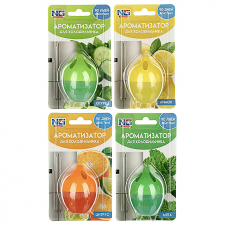 АРОМАТИЗАТОР ДЛЯ ХОЛОДИЛЬНИКА, 4 АРОМАТА (ЛИМОН, МЯТА, ОГУРЕЦ, ЦИТРУС)