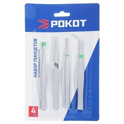 РОКОТ НАБОР ПИНЦЕТОВ, 4 ПР., НЕРЖАВЕЮЩАЯ СТАЛЬ