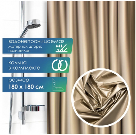 Штора водонепроницаемая для ванной комнаты и душа 180х180 см золотистый перламутр.