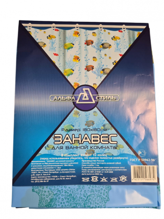 Штора п/э 180*180 Коралл.Рыбы Альфа (арт. 0046328)