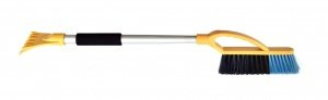 Современная эргономичная щетка для автомобиля облегчает очистку стекол и кузова. Для производства изделия использованы надежные морозостойкие материалы. Колодка и скребок выполнены из прочного пластика, ручка — из легкого алюминия. Щетина из искусственных волокон отличается упругостью. В то же время она достаточно мягкая и не царапает краску кузова. Щетинки расположены в несколько рядов.